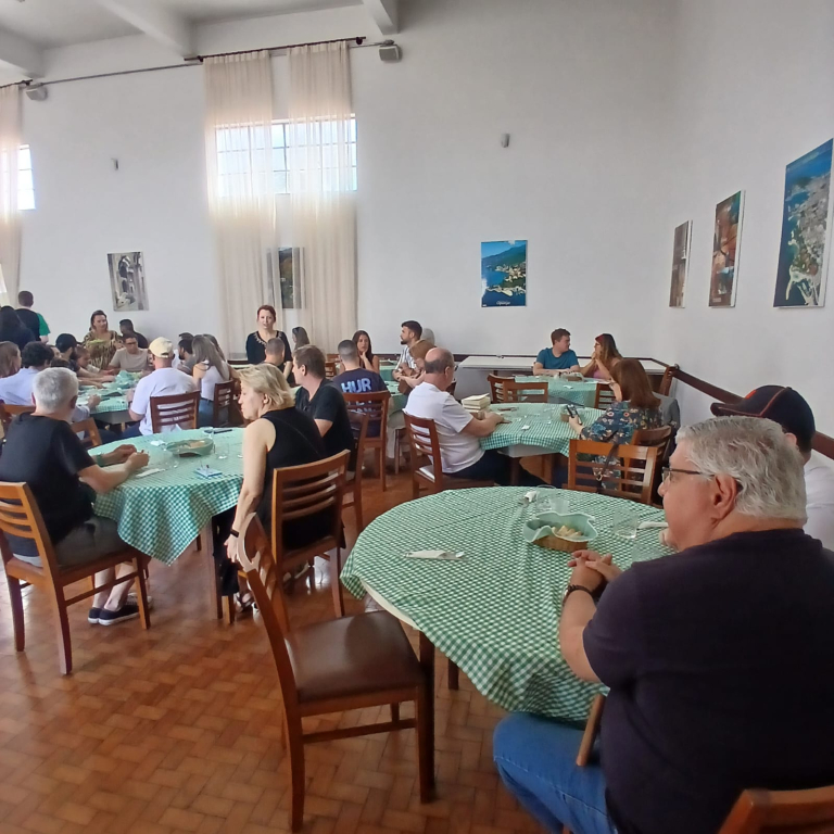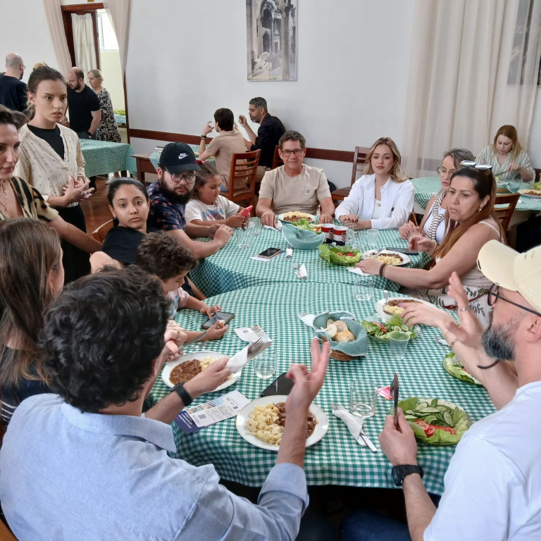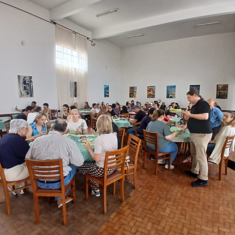 Após as palestras foram servidas mais de 70 refeições, entre elas o Gulaš com grenadir marš (goulash acompanhado de batatas e massa preparada com cebola e temperos) e o Arroz com lentilhas e caponata de beringela.