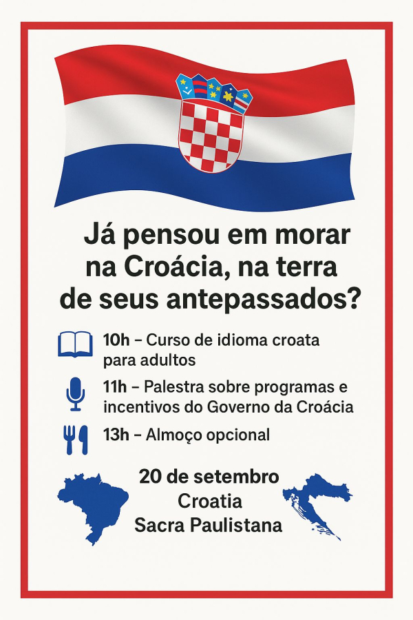 No dia 20 de setembro, sábado, na Croatia Sacra Paulistana, realizou-se o evento presencial "Você já pensou em morar na Croácia, na terra de seus antepassados?"